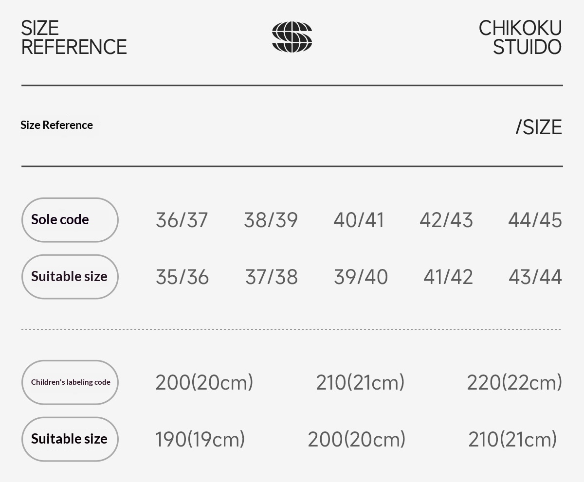Sizes: 36/37 (fits foot length 35–36), 38/39 (fits foot length 37–38), 40/41 (fits foot length 39–40), 42/43 (fits foot length 41–42), 44/45 (fits foot length 43–44)
