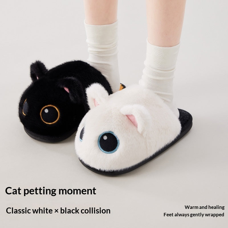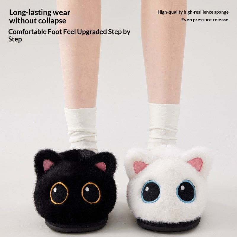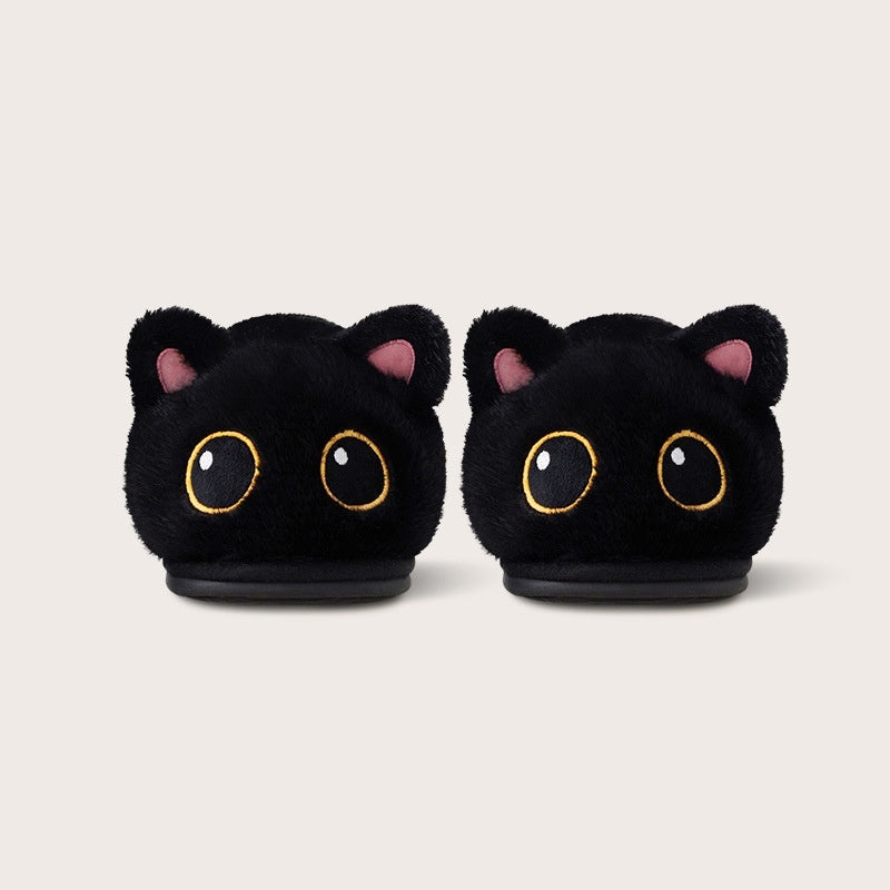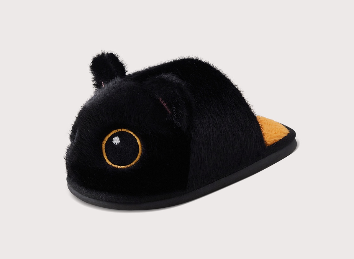 Little Black Cat Floor Cotton Slippers Fleece Lining For Extra Warmth